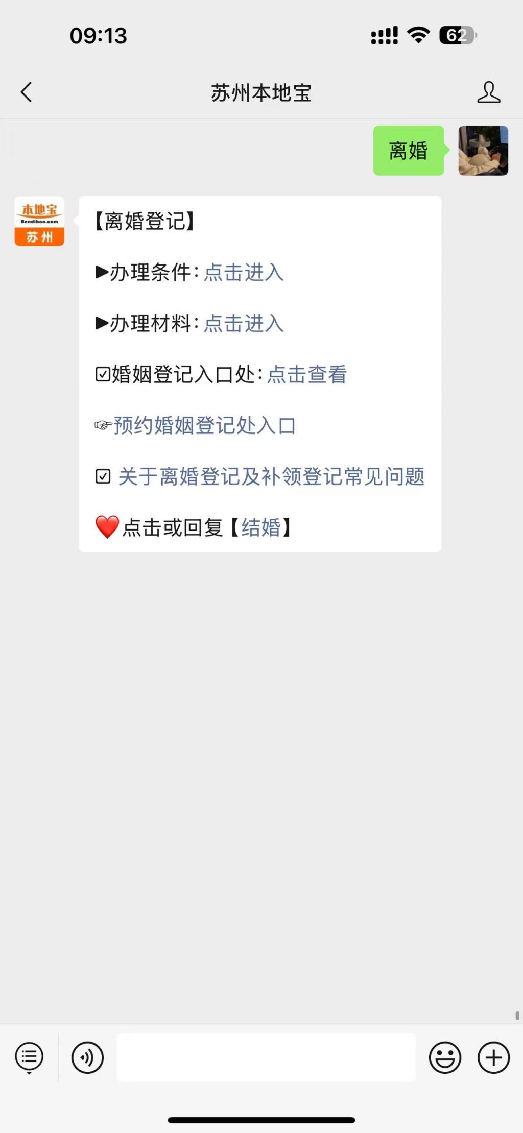 温馨提示:微信关注【苏州本地宝】微信公众号,对话框回复【离婚】即可获取苏州办理离婚条件、材料,婚姻登记处地址、预约入口等信息