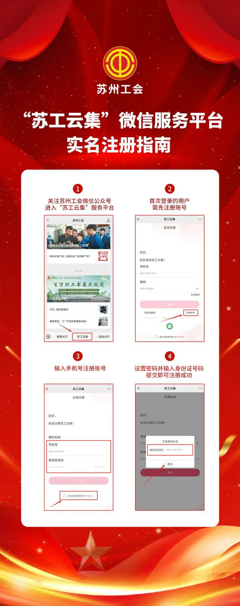 5.在法律允许范围内,苏州市总工会、吴江区总工会和苏工云集平台有权对相关内容进行变更,并在合理时间内通过苏州市总工会相关渠道公布。如有疑问可以致电65245900或4001899884或66093040。